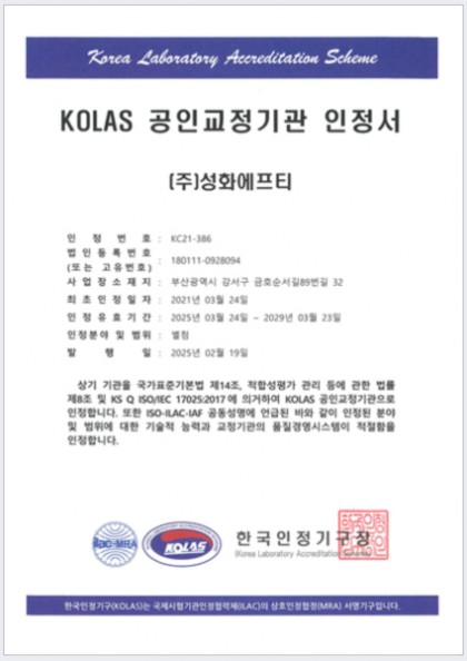 • KOLAS 국가공인 교정기관 인증서 (영문)