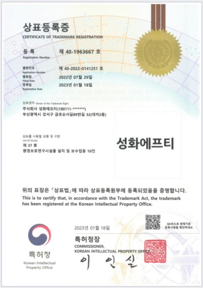 • 성화에프티 - 환경보호연구시설물 설치 및 보수업등 10건