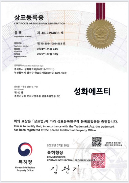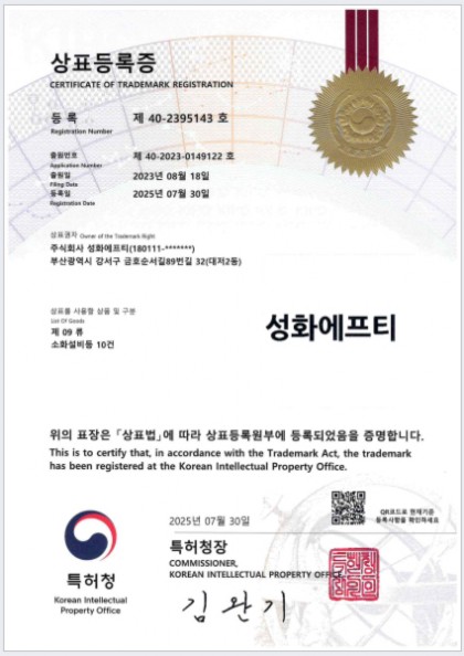 상호명: (주)성화에프티   대표: 정선영   사업자등록번호: 603-81-88425   TEL: 051-973-7982 /1600-7962  FAX: 051-980-7815