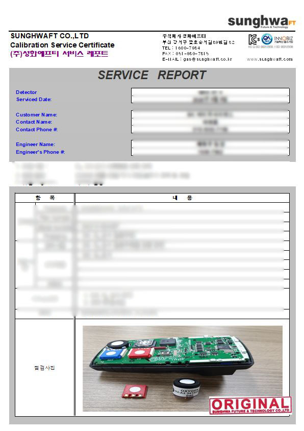 검교정 결과 O2, CO센서 에러로 센서 교체및 검교정을 진행 했습니다