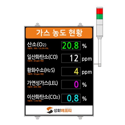 | 밀폐구역 맟춤 전광판 경보알람 시스템 전광판 사이즈별, 색상, 고객사 로고 디자인등 맞춤설계 회사로고 변경 주문 가능 5채널 가스 선택 풀컬러 도트 전광판 모듈 64mm |